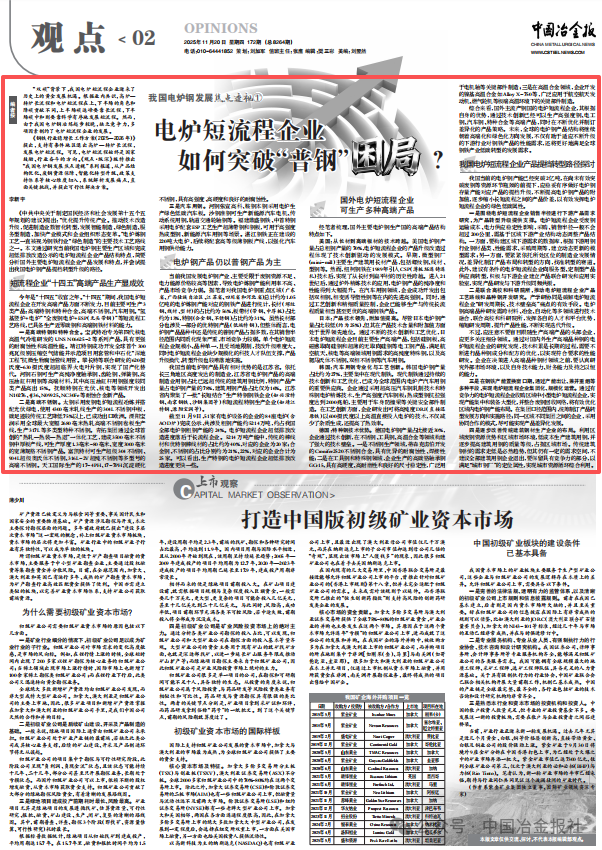 《鋼鐵行業穩增長工作方案(2025—2026年)》提出,支持有條件地區退出高爐—轉爐長流程,發展電爐短流程。可見,電爐短流程始終是國家鼓勵、行業奮鬥的方向。《中國冶金報》特推出“我國電爐鋼發展焦點透視”係列報道,從產品結構優化、廢鋼資源保障、智能化轉型升級、政策支持體係等核心維度切入,係統解析發展痛點,直麵關鍵挑戰,並提出可行性解決方案。