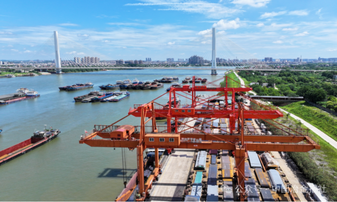 (湘鋼順祥碼頭正在進行吊運作業 攝影:賀意波)