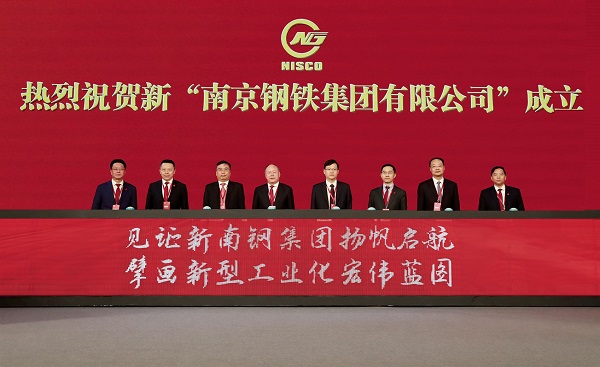 2023年12月15日,新“南京鋼鐵集團有限公司”揭(jie)牌(pai)成(cheng)立(li),南(nan)鋼(gang)集(ji)團(tuan)成(cheng)為(wei)中(zhong)信(xin)集(ji)團(tuan)體(ti)係(xi)一(yi)員(yuan),上(shang)市(shi)公(gong)司(si)南(nan)鋼(gang)股(gu)份(fen)的(de)實(shi)際(ji)控(kong)製(zhi)人(ren)變(bian)更(geng)為(wei)中(zhong)信(xin)集(ji)團(tuan)。據(ju)了(le)解(jie),中(zhong)信(xin)泰(tai)富(fu)特(te)鋼(gang)與(yu)南(nan)鋼(gang)強(qiang)強(qiang)聯(lian)合(he)後(hou),將(jiang)形(xing)成(cheng)產(chan)能(neng)3000萬wan噸dun級ji的de專zhuan業ye化hua特te鋼gang航hang母mu,實shi現xian規gui模mo和he市shi場chang占zhan有you率lv全quan球qiu第di一yi,優you特te鋼gang棒bang線xian材cai和he高gao附fu加jia值zhi鋼gang板ban產chan量liang全quan球qiu第di一yi。圖tu為wei新xin南nan鋼gang集ji團tuan揭jie牌pai成cheng立li現xian場chang。 (特約通訊員 吳斌 攝)
