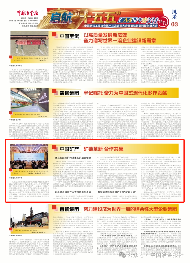 麵向2026年,中國礦產將把握“十五五”開局之年的重大發展機遇,立足“資源服務主力軍、產業進化新平台、和諧生態貢獻者”功能定位,攻堅克難、銳意進取,向著打造世界一流礦產資源綜合服務企業的目標穩步前行。(原宇斐)