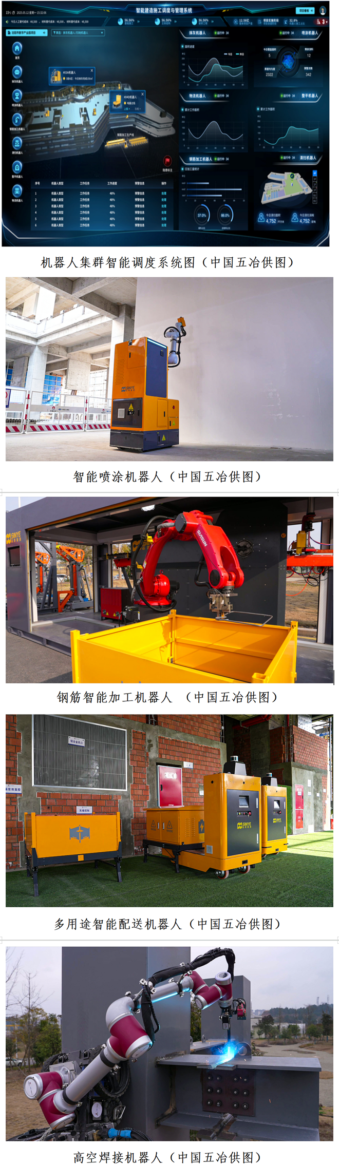 在項目工地上,運輸機器人搭載著各類建材和小型設備來回穿梭,轉運物資;焊接機器人在高空舞動“手臂”,自動進行焊接作業;噴塗機器人在室內“揮毫潑墨”,對著牆麵自主進行粉刷作業;鋼筋加工機器人不停運轉,將鋼筋精準折彎成所需的形狀;工地一旁的大屏幕,各個機器人的運轉狀態實時呈現,隻需點擊鼠標就可下達命令,讓“軍團”協調配合、完成各項施工任務……