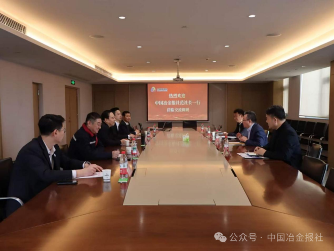 華鑫源鋼鐵總工程師王剛,辦公室主任周翔、周文謙;中國冶金報社鋼鐵部副主任李倩等人一起參加了交流和簽約儀式。