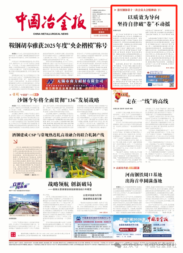 越是麵臨市場壓力,越要堅守自律底線;越是遇到發展難題,越要凝聚協同合力——這是“十四五”期間鋼鐵行業積累的寶貴經驗,更是“十五五”期間鋼鐵行業邁向高質量發展的關鍵密碼。今年是“十五五”開局之年,能不能開好局、起好步,關乎鋼鐵行業未來5年的發展方向。鋼協第十三次會員大會明確提出“控總量、優供給、促平穩、增效益、推轉型”,為行業發展指明了方向、劃定了路徑。而這一方針的落地,離不開全行業對自律的持續踐行。相信,隻要堅守自律底線、凝聚發展合力,鋼鐵行業就一定能越過“寒冬”,從“內卷”走向“共贏”!