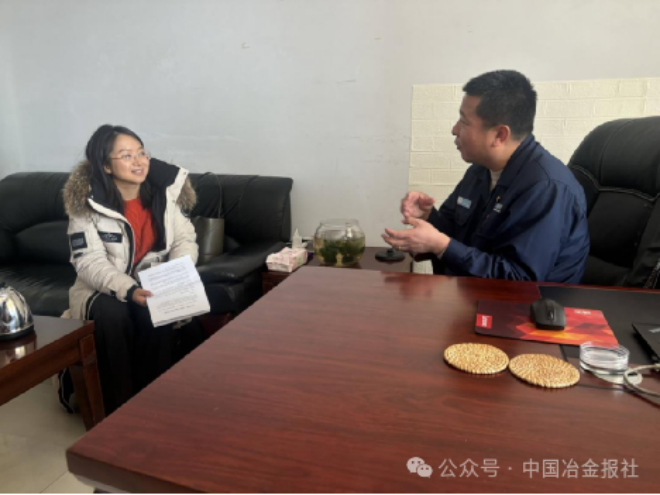 圖為《中國冶金報》記者在現場采訪