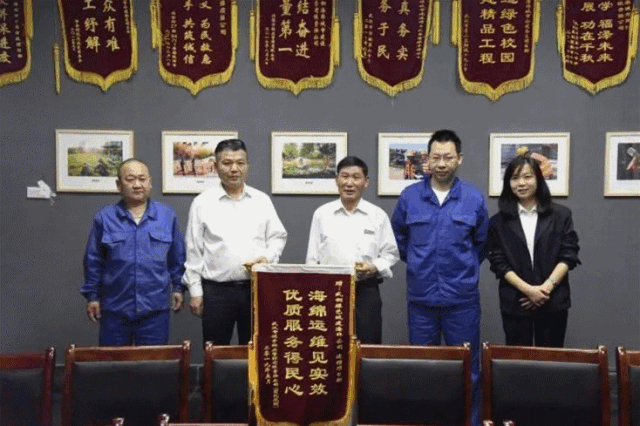 維護後的社區及學校,景觀效果大幅提升。為感謝運維項目部為小區及學校所作的貢獻,鴻宇物業管理有限責任公司及居民、公園家管理處、鋼城十九小相關負責人特製了三麵錦旗,以表彰運維項目部以人為本的使命感和服務為民、心係萬家的責任感。