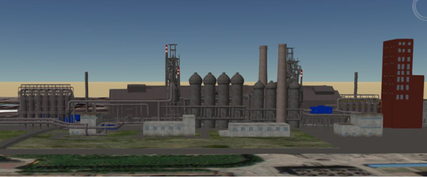 三維展示功能:包括公司大樓區域(含酒鋼信息中心)、誠信廣場、煉鐵1/2#高爐區域。