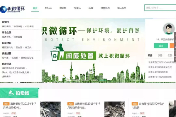 積微循環秉承“物盡其用,用其不盡”的理念,致力於為用戶提供競價、競拍、定向、供gong需xu信xin息xi發fa布bu等deng市shi場chang化hua在zai線xian交jiao易yi服fu務wu,並bing形xing成cheng了le一yi係xi列lie真zhen實shi可ke靠kao的de循xun環huan資zi源yuan交jiao易yi數shu據ju。通tong過guo對dui數shu據ju的de分fen析xi,積ji微wei循xun環huan能neng為wei用yong戶hu提ti供gong更geng專zhuan業ye、更精準的解決方案,幫助用戶提高閑廢資源的處置效率,實現資源的再生利用和增值,促進資源的高效配置。