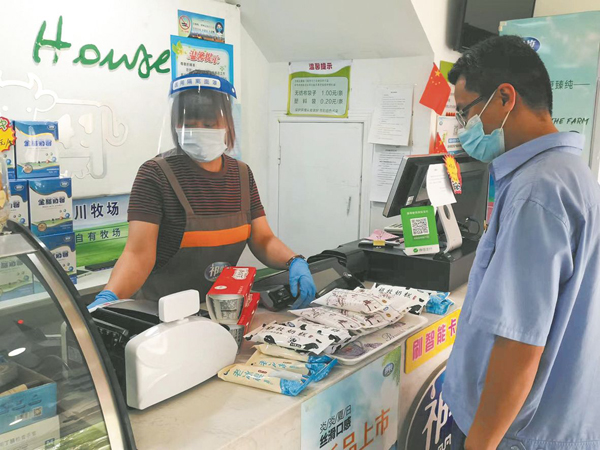 圖為酒鋼職工在體驗店購買酒鋼生產的祁牧牌雪糕。 (記者 王漢傑 攝)