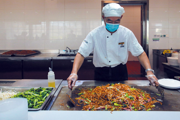 圖為馬鋼食堂廚師正在製作美食。(馬力生 攝)
