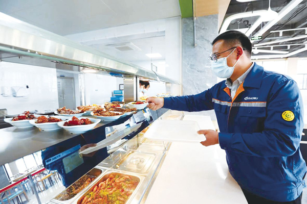 圖為中國寶武馬鋼職工在食堂取餐。 (本報記者 章利軍 攝)