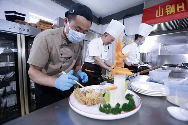 圖為山鋼日照公司“魯花杯”第二屆餐飲廚藝大賽比賽現場。(山鋼 供圖)