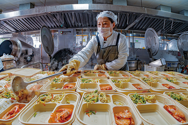 圖為該公司配餐中心餐飲工正在配餐。
