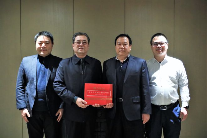 圖為中國冶金報社黨委書記、社長陳玉千向侯軍贈送全國兩會(2018-2022)報道集錦