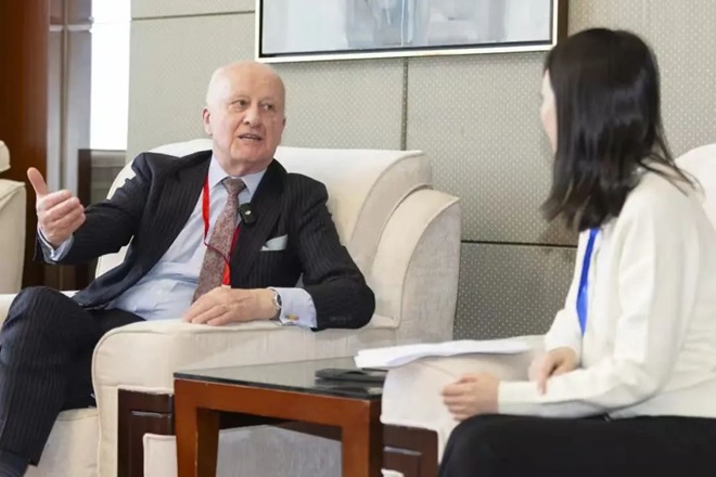 圖為約翰·勞赫德院士接受《中國冶金報》記者專訪。(特約通訊員 藍義高 攝影)