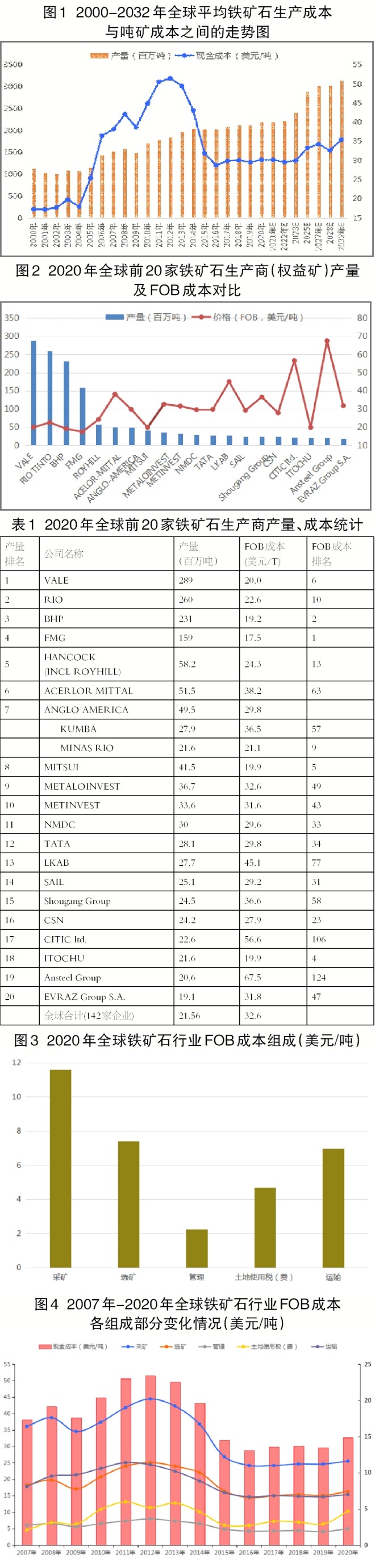 根據全球權威行業數據,2020年全球鐵礦石產量前20家的企業共生產了14.54億噸鐵礦石,占全球總量的67%以上,而這20家企業中除安賽樂米塔爾、LKAB、首鋼、鞍鋼4家公司外,其他的企業FOB成本均低於或接近全球32.6美元/噸的平均值。