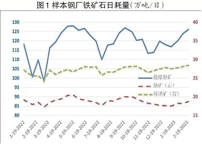 燒結粉礦日耗增加 國產球團礦占比升高 ——2023年2月下旬我國鋼企鐵礦石日耗結構分析