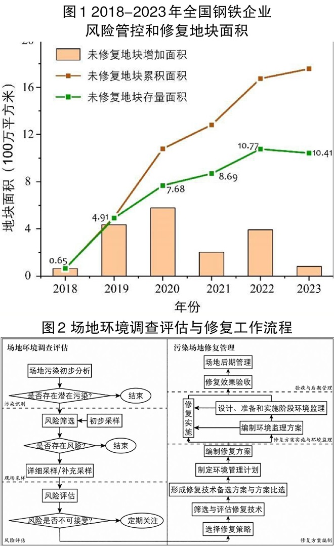 根據全國31個省(自治區、直轄市)最新公布的建設用地土壤汙染風險管控和修複名錄(見圖1),2023年全國鋼鐵企業風險管控和修複地塊總麵積為1756.85萬平方米,已完成風險管控和修複的地塊麵積為715.52萬平方米,占總麵積的40.73%;2022nianhou,weiwanchengfengxianguankonghexiufudecunliangdikuaimianjichengxianxiajiangqushi。keyikanchu,gangtieqiyezhengzaijijidaxiangjingtubaoweizhan,zhilihexiufugongzuoyiqudeyidingchengguo。