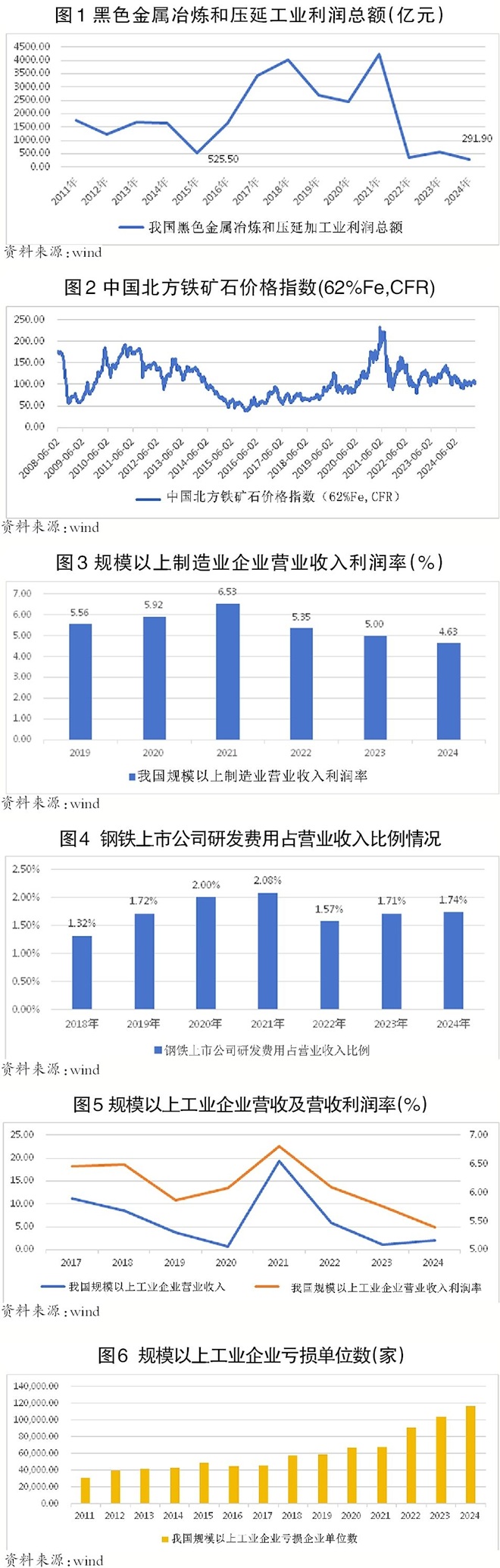 黑色產業鏈利潤分配的嚴重失衡,不僅鋼鐵行業利益受損,最終也會導致整個製造業利益受損。根據國家統計局數據,自2021年以來,我國規模以上製造業企業營業收入利潤率持續下行至2024年的4.63%。