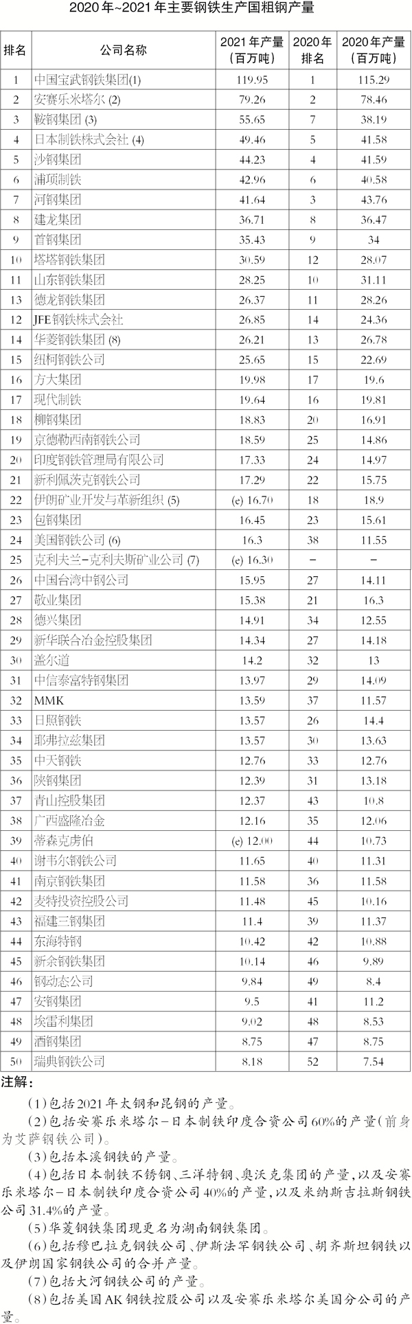 據悉,2022年全球鋼鐵企業排名以2021年全球鋼鐵企業粗鋼產量為依據。