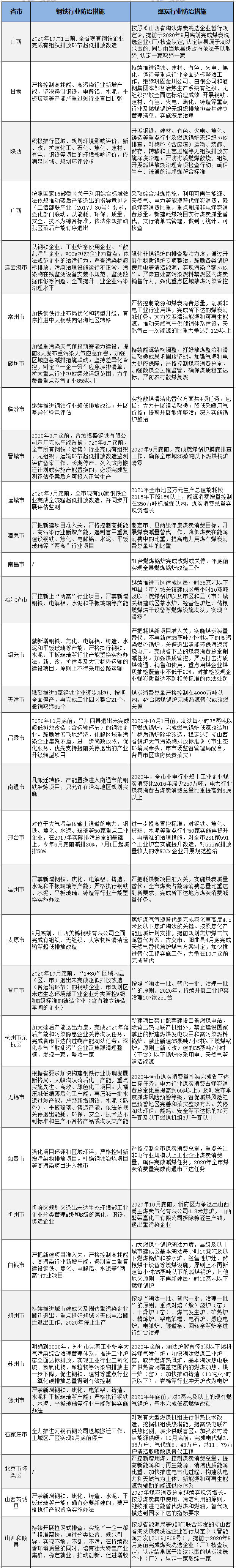 目前,大氣汙染治理已經進入攻堅期,要確保《藍天保衛戰行動計劃》順利收官仍麵臨著許多挑戰。據Mysteel不完全統計,截至到6月9日,已有33個地區出台2020年藍天保衛戰行動計劃,涉及鋼鐵行業的內容具體如下: