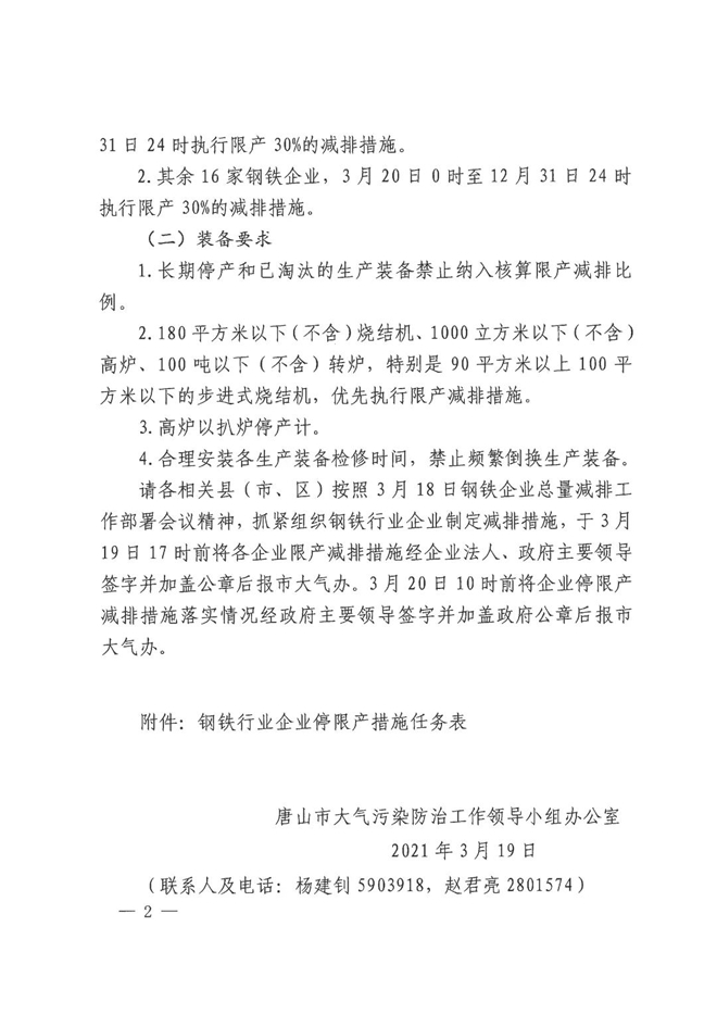 從《通知》獲悉,自3月20日起直至今年年底,除首鋼股份公司遷安鋼鐵公司、首鋼京唐鋼鐵聯合有限責任公司外,唐山市全流程鋼鐵企業全部實行限產減排措施。