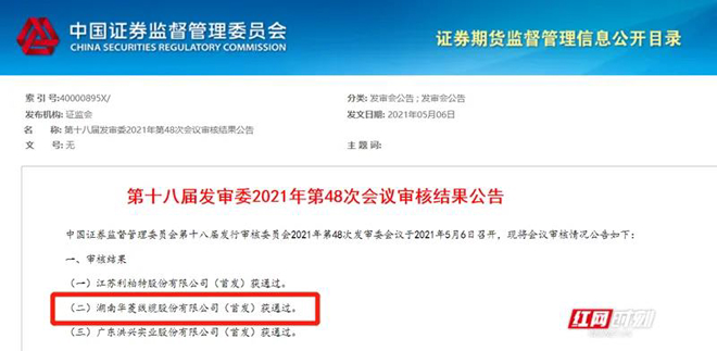 華菱線纜IPO獲通過 華菱集團即將迎來第2家A股公司