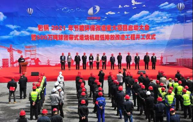 5月13日,包鋼2021年節能環保改造重大項目啟動大會暨500萬噸球團帶式焙燒機超低排放改造工程開工儀式舉行,標誌著包鋼以燒結脫硫脫硝改造和CCPP燃氣蒸汽聯合循環發電為代表的節能降碳超低排放改造工程全麵啟動。