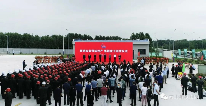 5月23日,泰山鋼鐵集團舉行加氫母站、氫能重卡運營啟動儀式。這是泰山鋼鐵全麵落實山東省氫能產業發展規劃,助力“中國氫穀”建設的具體行動,更是泰山鋼鐵加快培育新動能,推動產城融合發展的重要舉措。