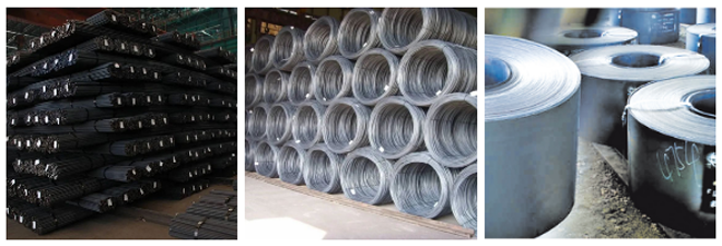 左、中、右圖依次為昆鋼棒材產品、線材產品和熱軋中寬帶產品。