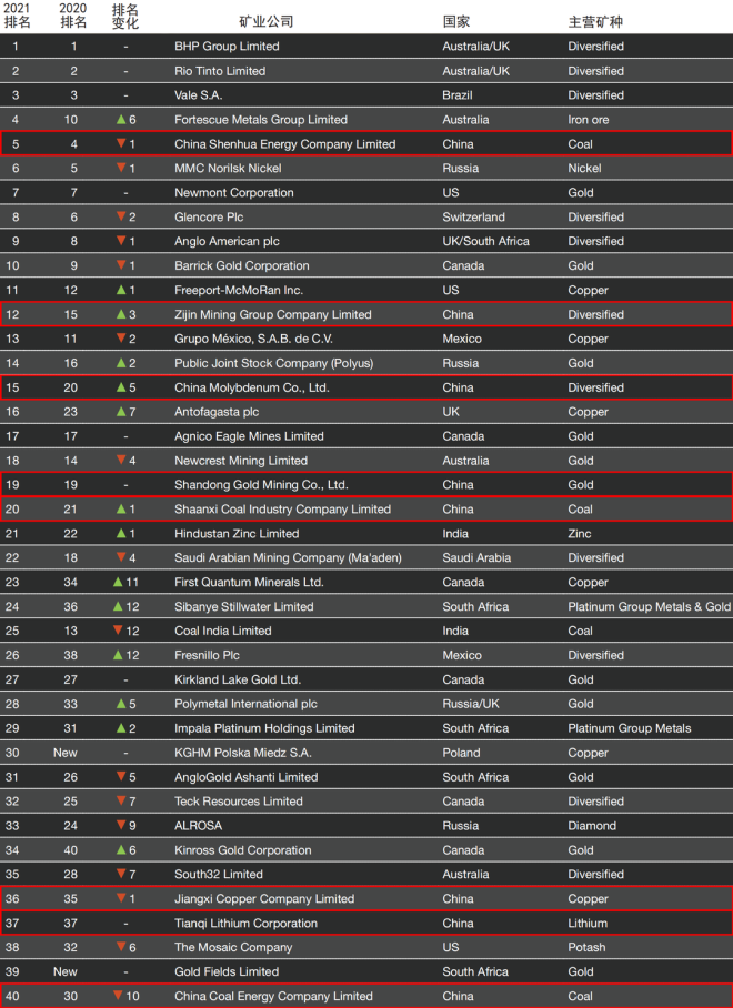8家中資企業上榜!2021年全球礦企40強業績有望再創新高