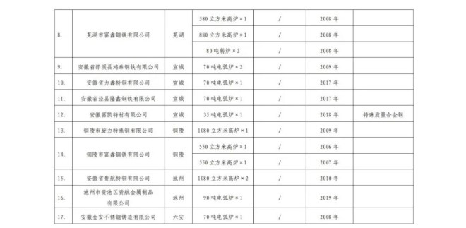 8月5日,安徽省經濟和信息化廳網站發布公告稱,根據《國家發展改革委 工業和信息化部關於運用價格手段促進鋼鐵行業供給側結構性改革有關事項的通知》(發改價格〔2016〕2803號)要求,將《安徽省鋼鐵行業限製類、淘汰類裝置企業名單》公示,名單中的17家鋼企擬被執行差別電價。公示期為8月5日—8月11日。