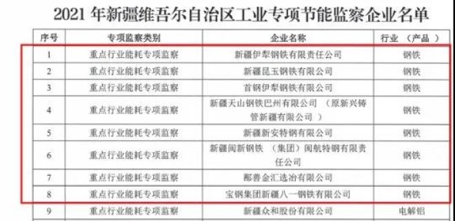 近日,新疆關於開展2021年度節能監察專項工作的通知,涉及鋼鐵企業9家。