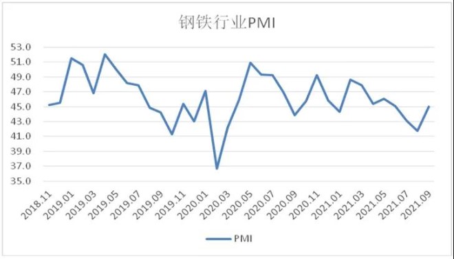 9月份鋼鐵行業PMI為45.0%,運行依然偏緊