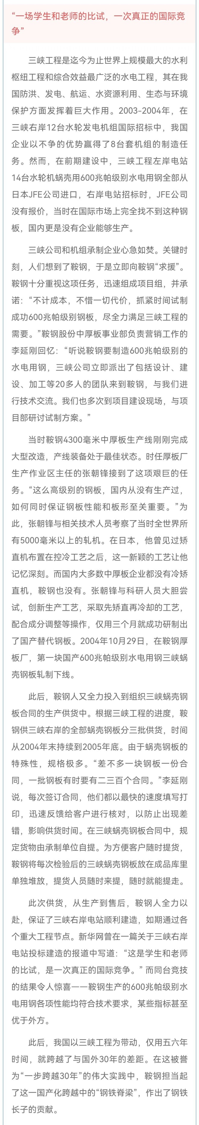 挺起水電建設“鋼鐵脊梁”——鞍鋼集團水電用鋼發展紀實