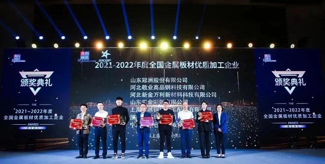 近日,2021中國金屬板材產業鏈年會在濟南順利舉行。會上,我的鋼鐵網公布了2021年度全國金屬板材優質供應商和全國金屬板材優質加工企業等榮譽榜單。河北敬業高品鋼科技有限公司通過市場開發、產品質量以及客戶服務的提升等,榮獲“全國金屬板材優質加工企業”獎項。