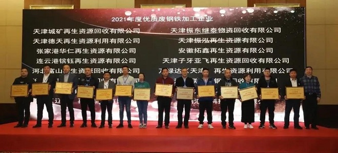 全天會議結束後,舉辦了氣氛熱烈的答謝晚宴和隆重的頒獎典禮,在參會嘉賓的熱烈掌聲下,行業領導為榮獲“2021年度優質廢鋼鐵加工企業”“2021年度優質廢鋼加工設備合作夥伴”獎項的企業代表頒發了獎牌。大會在熱烈的氛圍下圓滿落幕。