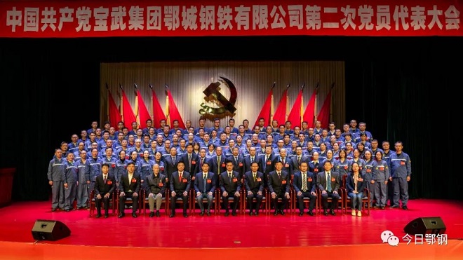 10月15日上午9點,鄂鋼職工文化活動中心內氣氛熱烈,主席台正中懸掛著中國共產黨黨徽,10麵鮮豔奪目的紅旗分列兩側。在莊嚴的國歌聲中,鄂城鋼鐵第二次黨員代表大會隆重開幕。大會的主題是:高舉習近平新時代中國特色社會主義思想偉大旗幟,深入貫徹黨的十九大、十九屆曆次全會和習總書記“七一”重要講話精神,以習總書記考察調研中國寶武重要講話精神為引領,政治統領把方向,凝心聚力促發展,努力打造“百億級營收、十億級利潤、營運千萬噸級”的優秀鋼鐵企業,極致效率的綠色智慧型城市鋼廠,讓“用戶滿意、股東放心、社會推崇、員工幸福”的美麗鄂鋼,在新的曆史起點上,不斷把鄂鋼的各項事業推向前進!
