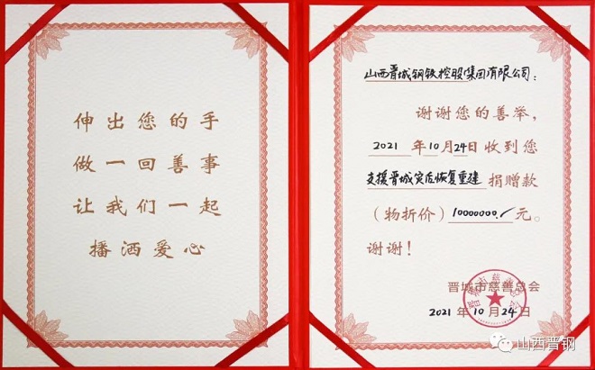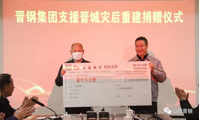 晉鋼集團捐贈1000萬元支援晉城地區災後重建
