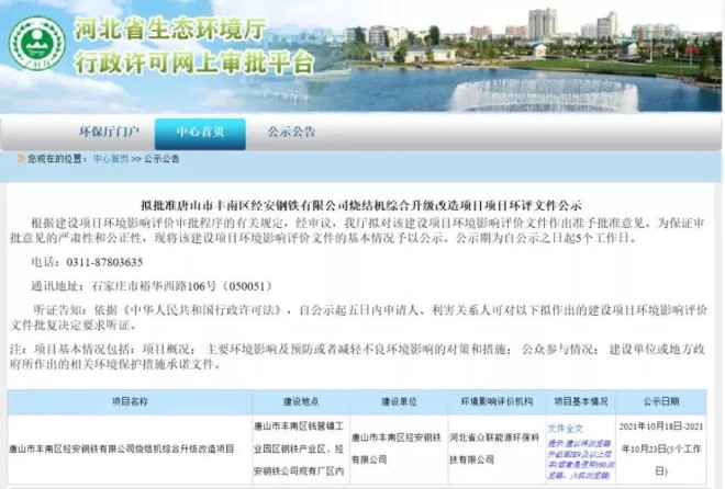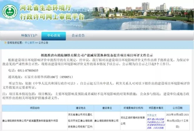 總投資超30億元!唐山兩大鋼鐵項目進入環評公示