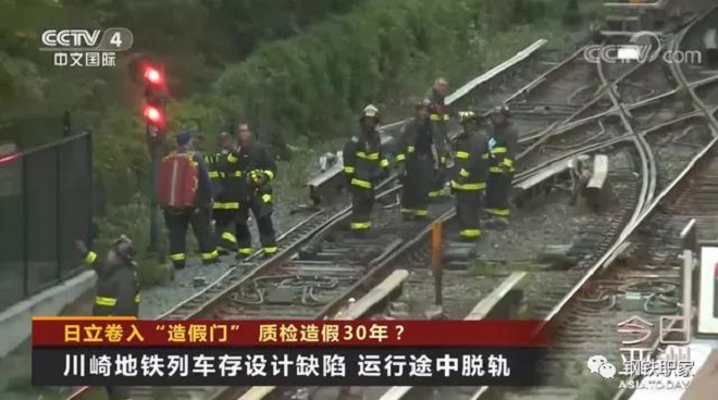 據CCTV4《今日亞洲》,日本製造近年來屢屢被爆出各種嚴重問題。10月12日,美國華盛頓地區的一輛地鐵列車在運行途中突然脫軌,導致多名乘客被困1小時。華盛頓交通局證實,發生脫軌事故的列車是日本川崎生產的“7000係列”,因此停運了60組同車型列車。而這一車型均有一個設計缺陷——車輪和車軸存在問題,這使得列車的車輪在車軸上伸展得太寬,易引發車廂脫軌。