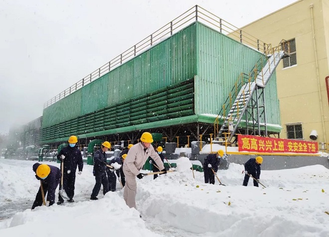 朝陽鋼鐵職工奮力掃雪保產,消除設備故障隱患。