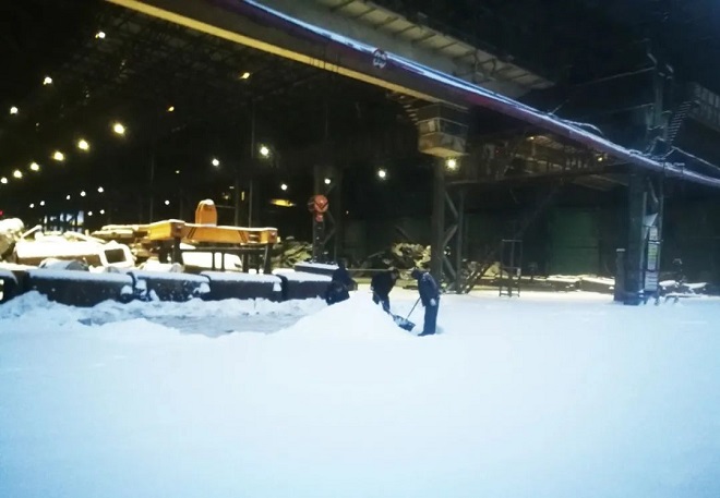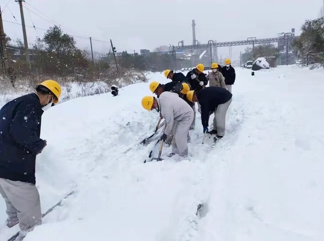 本鋼北營煉鐵總廠集中力量對重點路段、生產區域和協助除、運雪力量較為薄弱環節進行突擊清理,保障生產順行和交通安全。