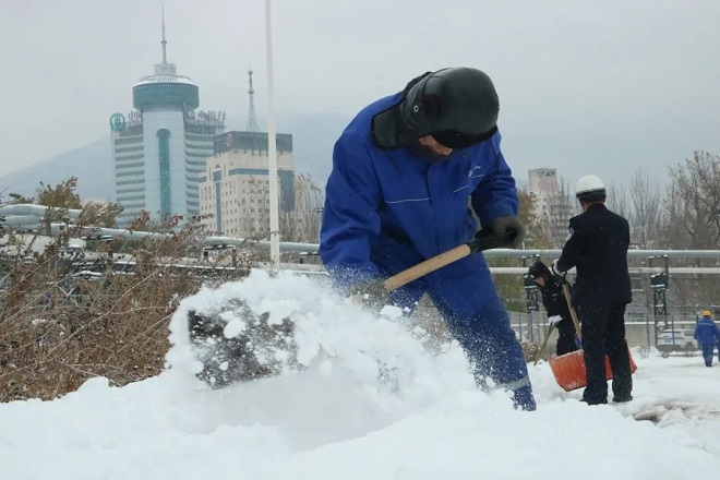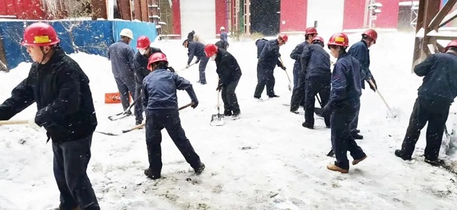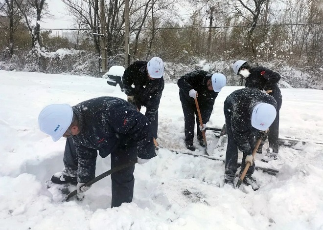 鞍鋼集團工程技術有限公司保安人員、後勤保障人員、青年團員、機關部門及各事業部員工自發清理積雪。