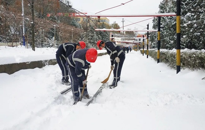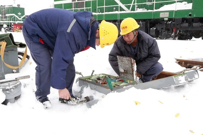 鞍鋼礦業弓礦鐵運公司全體幹部職工團結一心,確保在極端惡劣天氣下礦區鐵路運輸生產安全暢通。