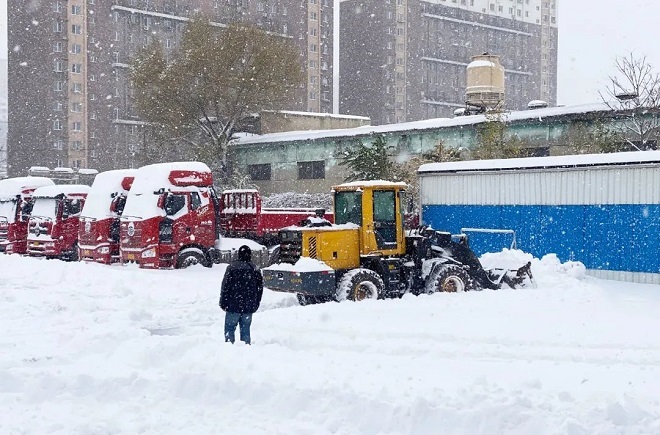 本鋼板材儲運中心組織人力對區域內積雪進行全麵清掃,確保區域各庫區道路暢通,方便生產物資運輸。
