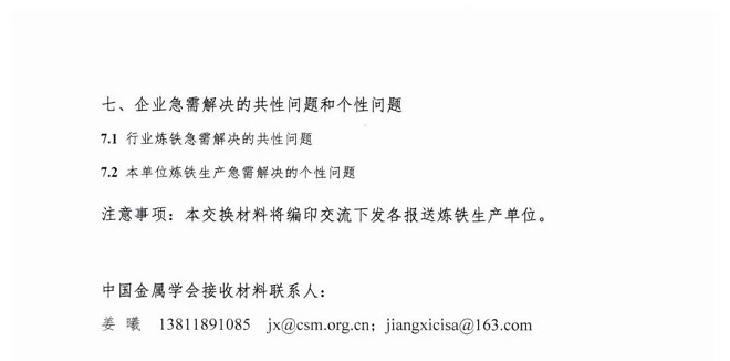 2. 2021年各企業煉鐵生產技術總結交換材料word版本。各單位需提供本企業交換材料,會議期間交流下發各生產單位。接收材料聯係人: