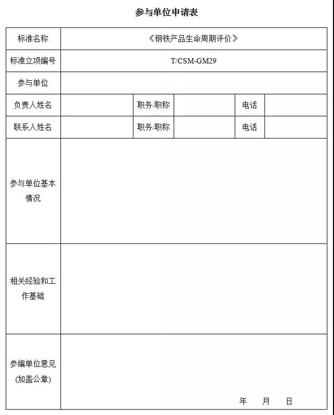 關於征集《鋼鐵產品生命周期評價》標準參與單位的通知