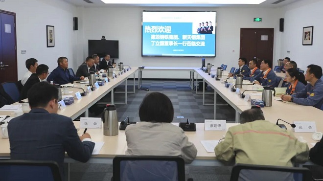 吳琨宗對丁立國一行的到來表示歡迎。他指出,民營企業的很多做法正是鄂城鋼鐵需要學習的,丁立國董事長對於行業發展方向的看法十分令人敬佩。鄂城鋼鐵十分期待與德龍鋼鐵集團、新天鋼集團成為夥伴,未來雙方要加強聯係,深入交流,爭取在更多領域更深層次達成合作。