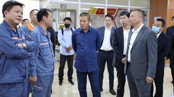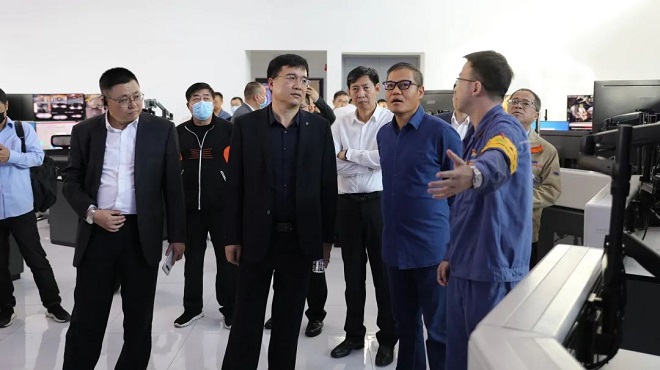 在鄂城鋼鐵,丁立國一行參觀了煉鋼廠、軋材廠、煉鐵廠、花溪濕地、操業集控中心等,對鄂鋼生產裝備、產品、綠色工廠建設、智慧製造推進情況進行全麵了解。
