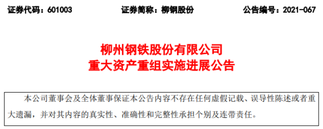 12月24日,柳州鋼鐵股份有限公司發布了《柳州鋼鐵股份有限公司 重大資產重組實施進展公告》(以下簡稱《公告》)。